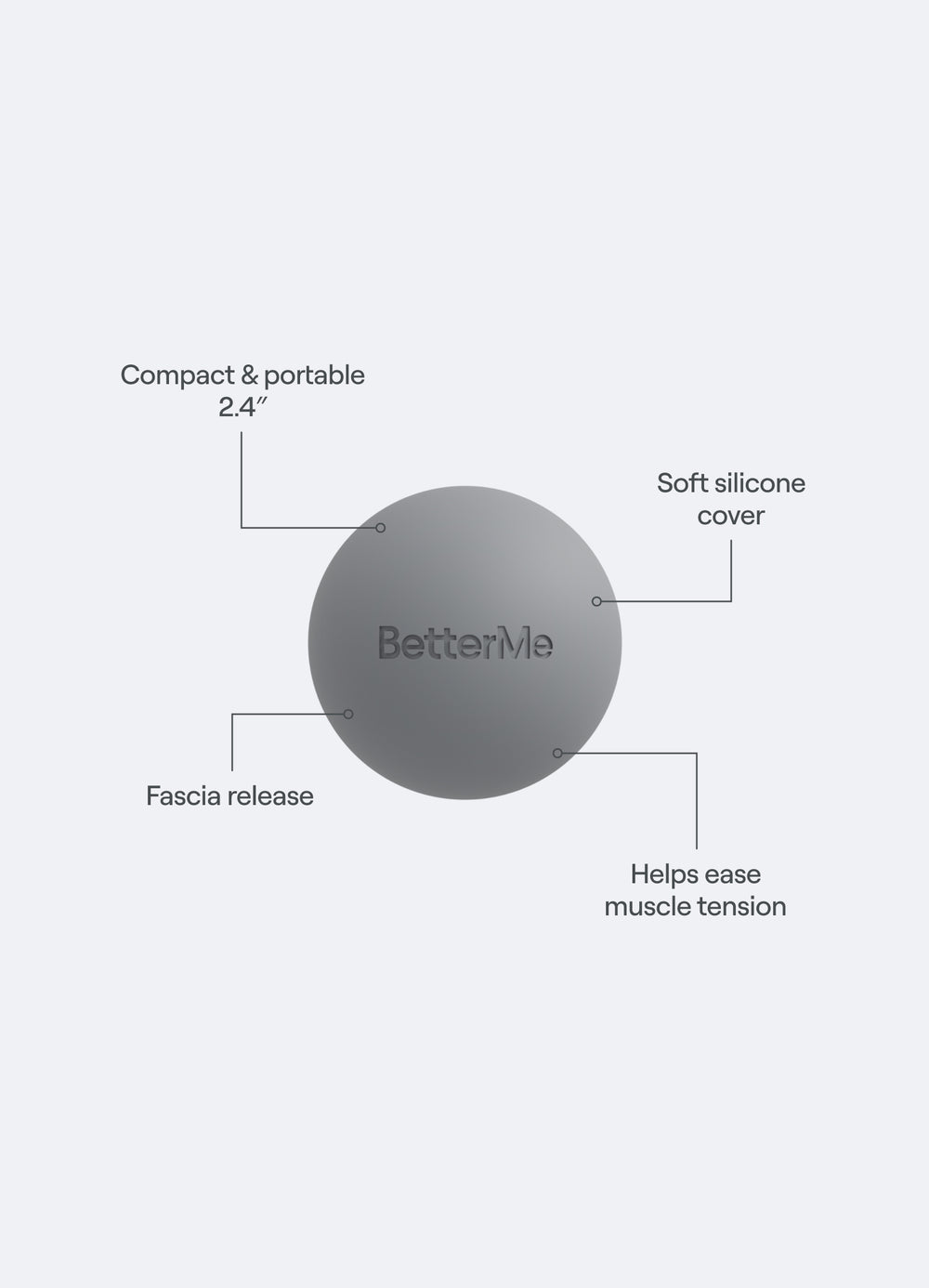 Target and relieve sore muscles with our BetterMe Recovery Massage Ball. Perfect for hard-to-reach spots, this portable equipment offers gentle pressure to ease tension and enhance flexibility. Its compact size makes it ideal for at-home use or on-the-go recovery.