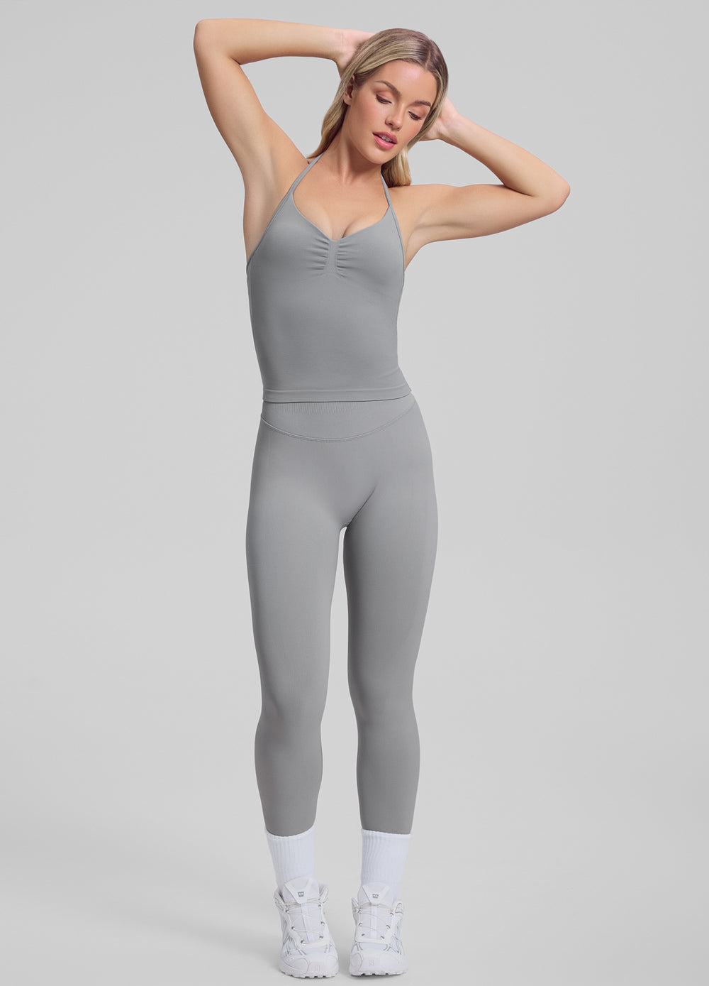 These leggings feel like a soft hug while giving you a smooth, confident silhouette. Gentle contour knit and scrunch seam add natural shaping without any pressure. Made of high-stretch fabric, they keep you comfy whether you’re lifting, cooling down, or simply chilling.