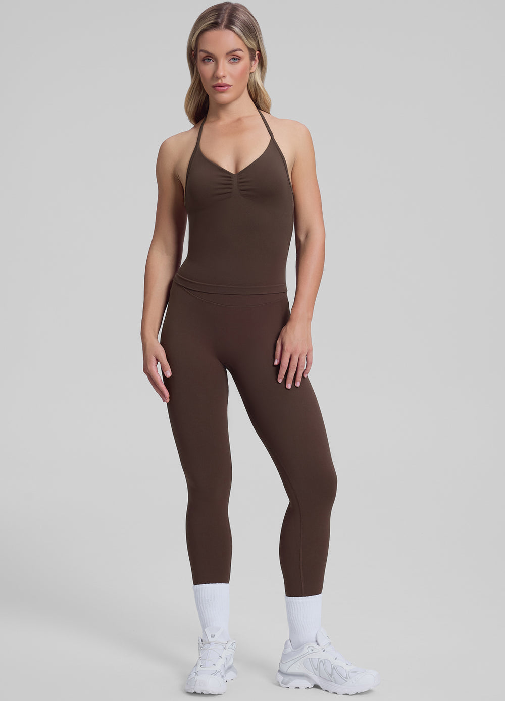 These leggings feel like a soft hug while giving you a smooth, confident silhouette. Gentle contour knit and scrunch seam add natural shaping without any pressure. Made of high-stretch fabric, they keep you comfy whether you’re lifting, cooling down, or simply chilling.