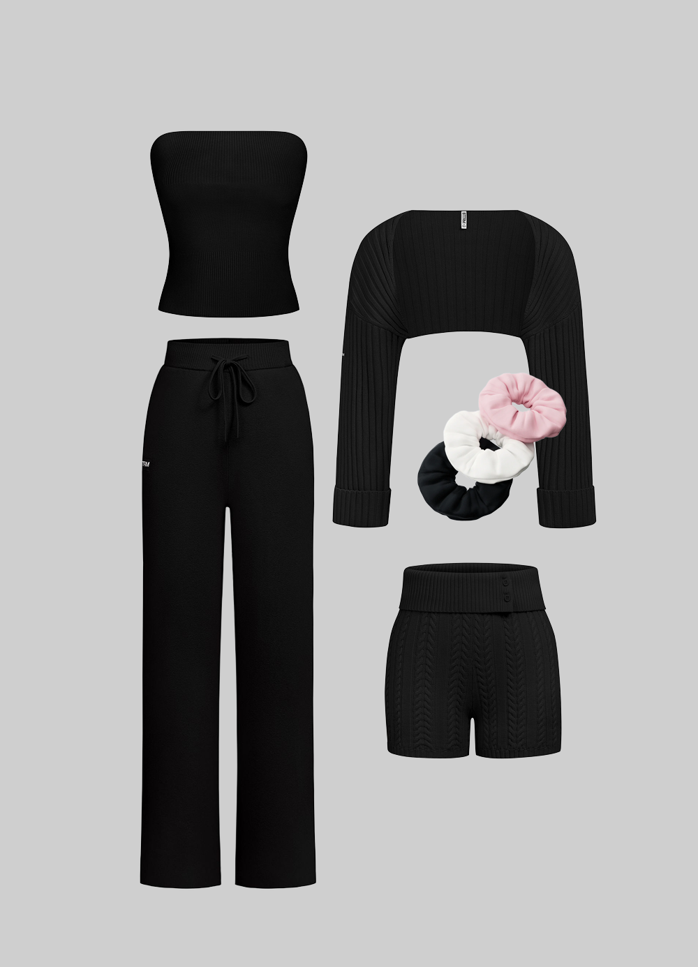 Soft, sculpted, and undeniably cute—this knit-focused 5-piece set is made for cozy layering and effortless lounging. Your chill days just got upgraded.
