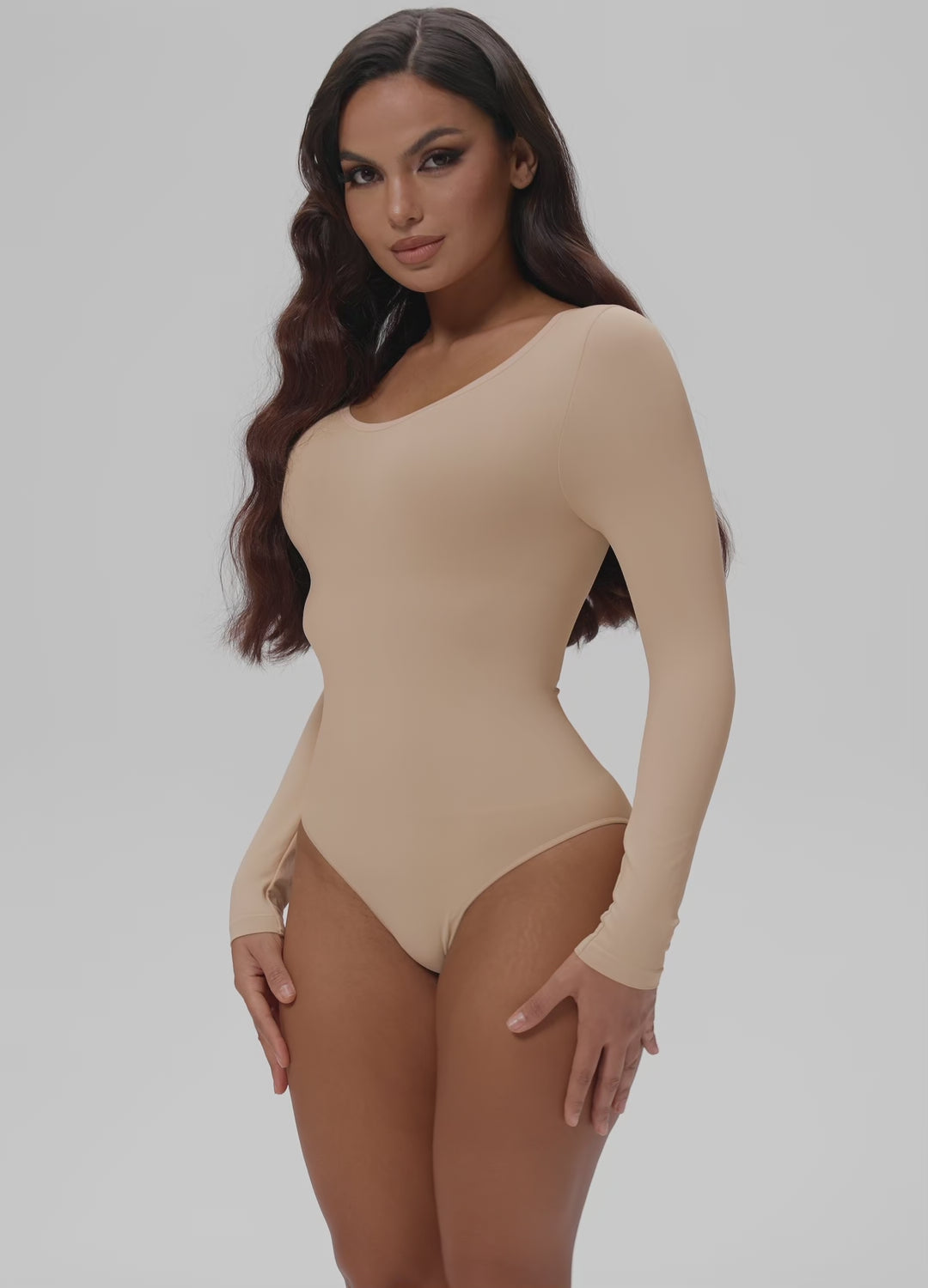 Seamless Long Sleeve Tummy-Control Full Body Shaper Bodysuit