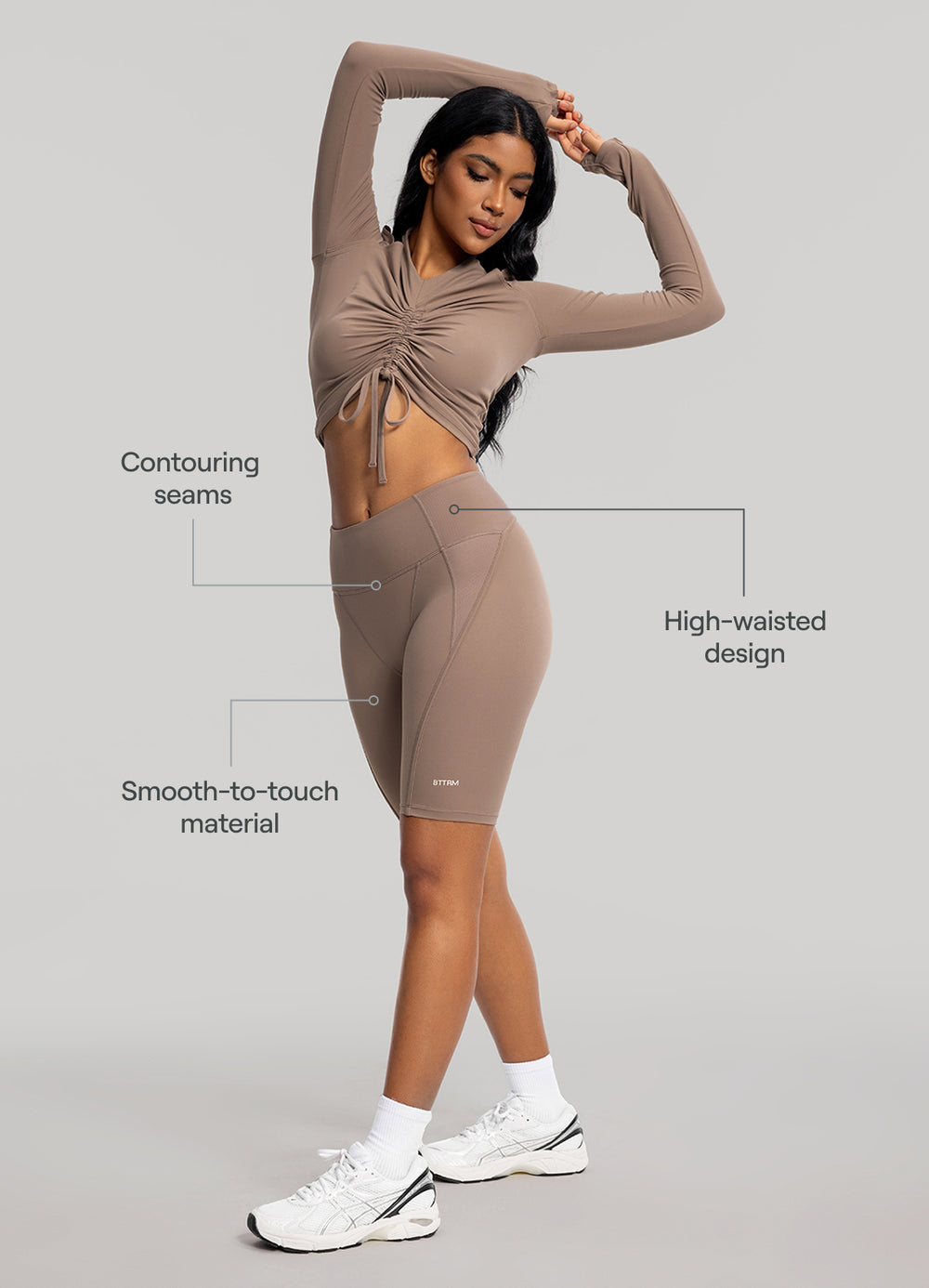 Estos shorts fluyen con tu cuerpo como el agua, mientras que la cintura alta se mantiene segura en cada giro y estiramiento. El tejido transpirable te mantiene fresco mientras te mueves, permitiéndote permanecer conectado con la naturaleza, ya sea montando en bici, corriendo o simplemente tomando el sol. Muévete con libertad y mantén los pies en la tierra, como la naturaleza manda.