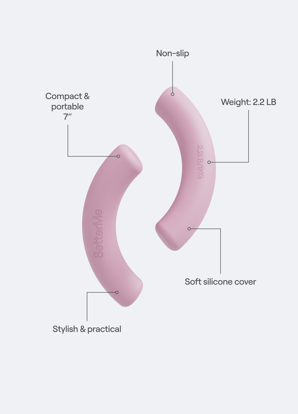 ¿Necesitas añadir algo nuevo a tu rutina? La mezcla perfecta de elegancia y practicidad: conoce tu nuevo accesorio imprescindible para entrenar. Pequeñas pero poderosas, nuestras mancuernas para esculpir son sinónimo de comodidad, control y estilo. Compactas, elegantes y de agarre suave, estas mancuernas hacen que cada movimiento se sienta sin esfuerzo, desde Pilates hasta caminatas enérgicas. ¿Siempre en movimiento? No te preocupes. Diseñadas para estilos de vida ajetreados, estas mancuernas son elegantes y fáciles de transportar, listas para ir dondequiera que vayas: sólo tienes que meterlas en tu bolso y mantenerte activo cuando quieras.