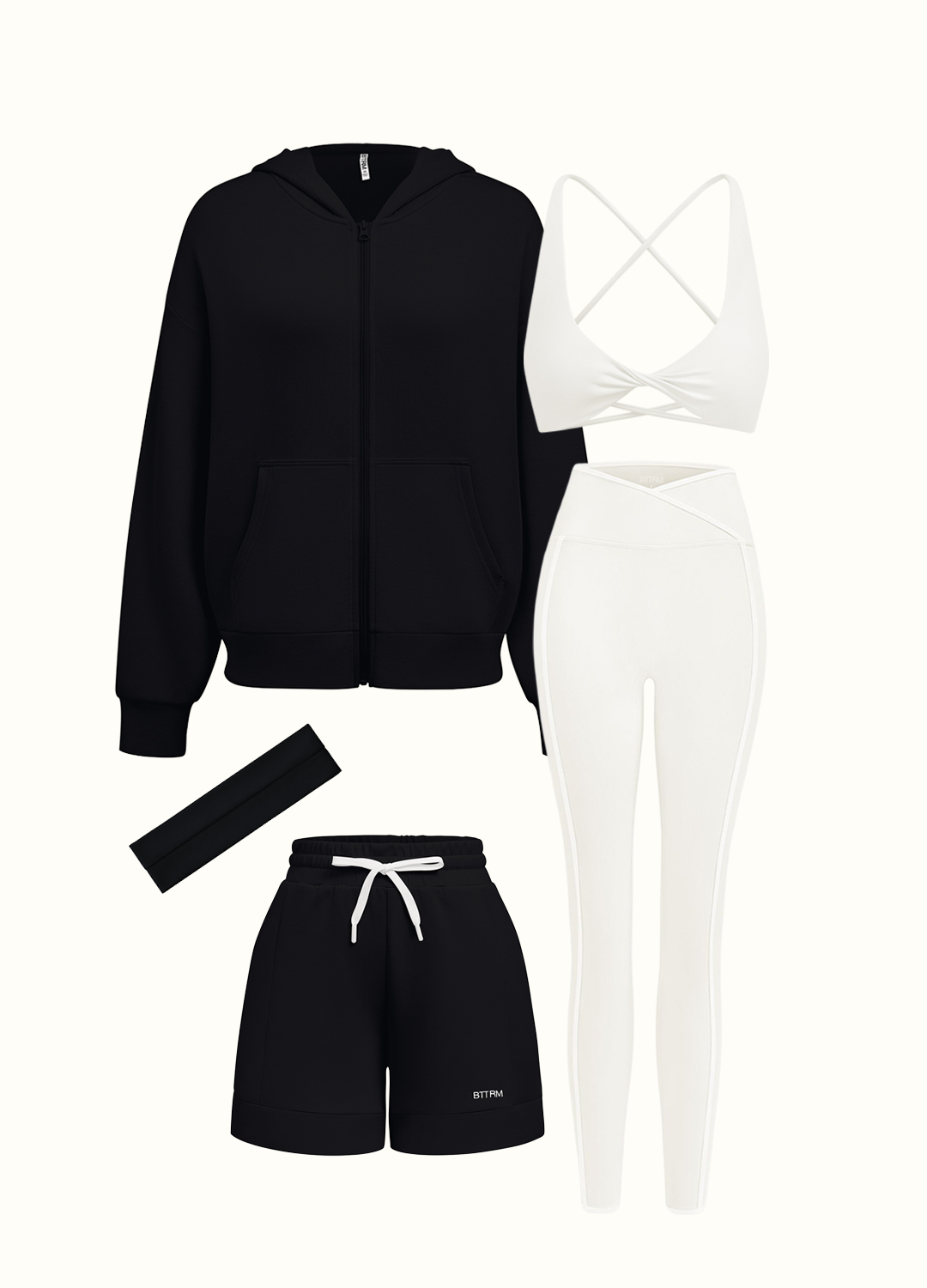 - Hoodie: Loose fit, zip-up closure