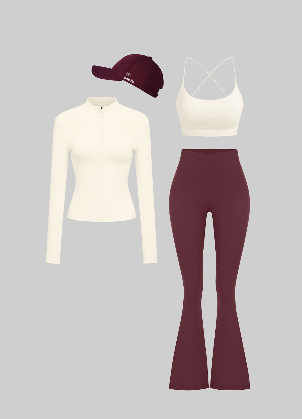 From yoga flows to on-the-go, this matching set is ready for your every move. Flattering flared leggings, a lightweight jacket, and simple strapback cap make this set a go-to for busy days, chill weekends, and everything in between.