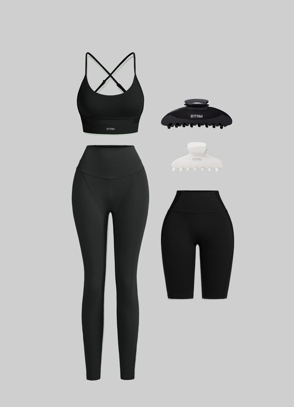 Your workout wardrobe, covered. From breathable bras to high-stretch leggings and ultra-comfy claw clips, this set checks all the boxes.