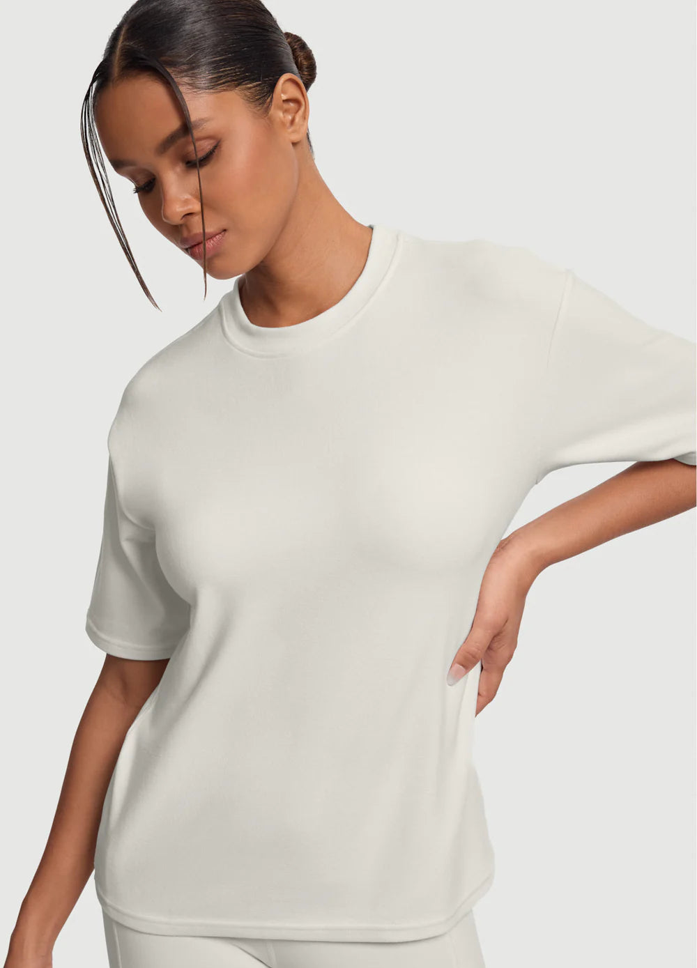 - Shirt: Easy fit, hip-length cut