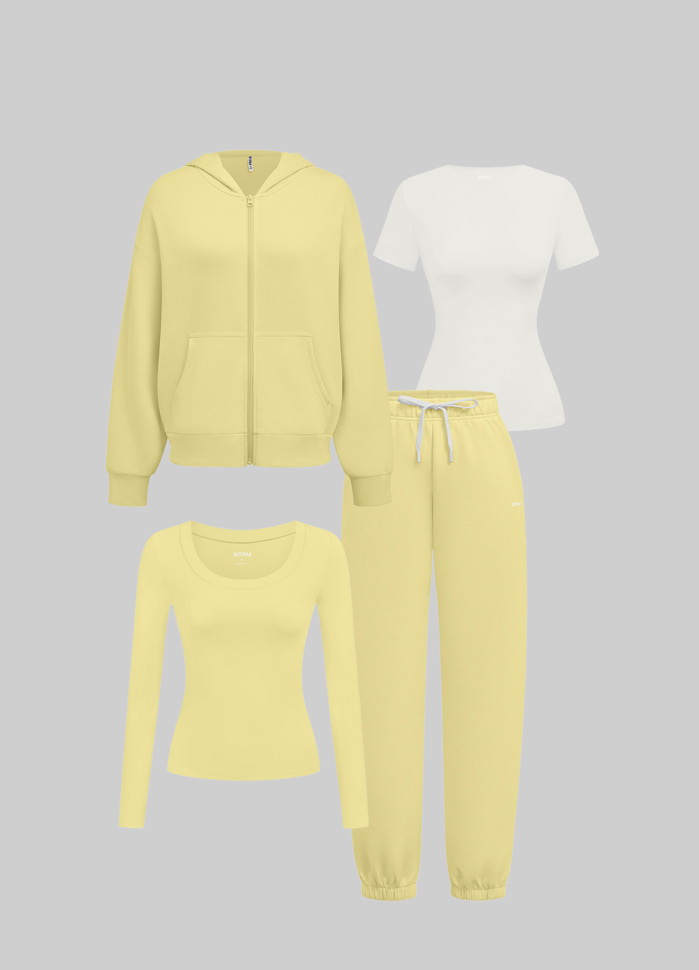Cozy vibes only: wrap up in four versatile pieces that feel as good as they look. Seamless fits, soft fabrics—and they’re easy to style? Add to cart, please.