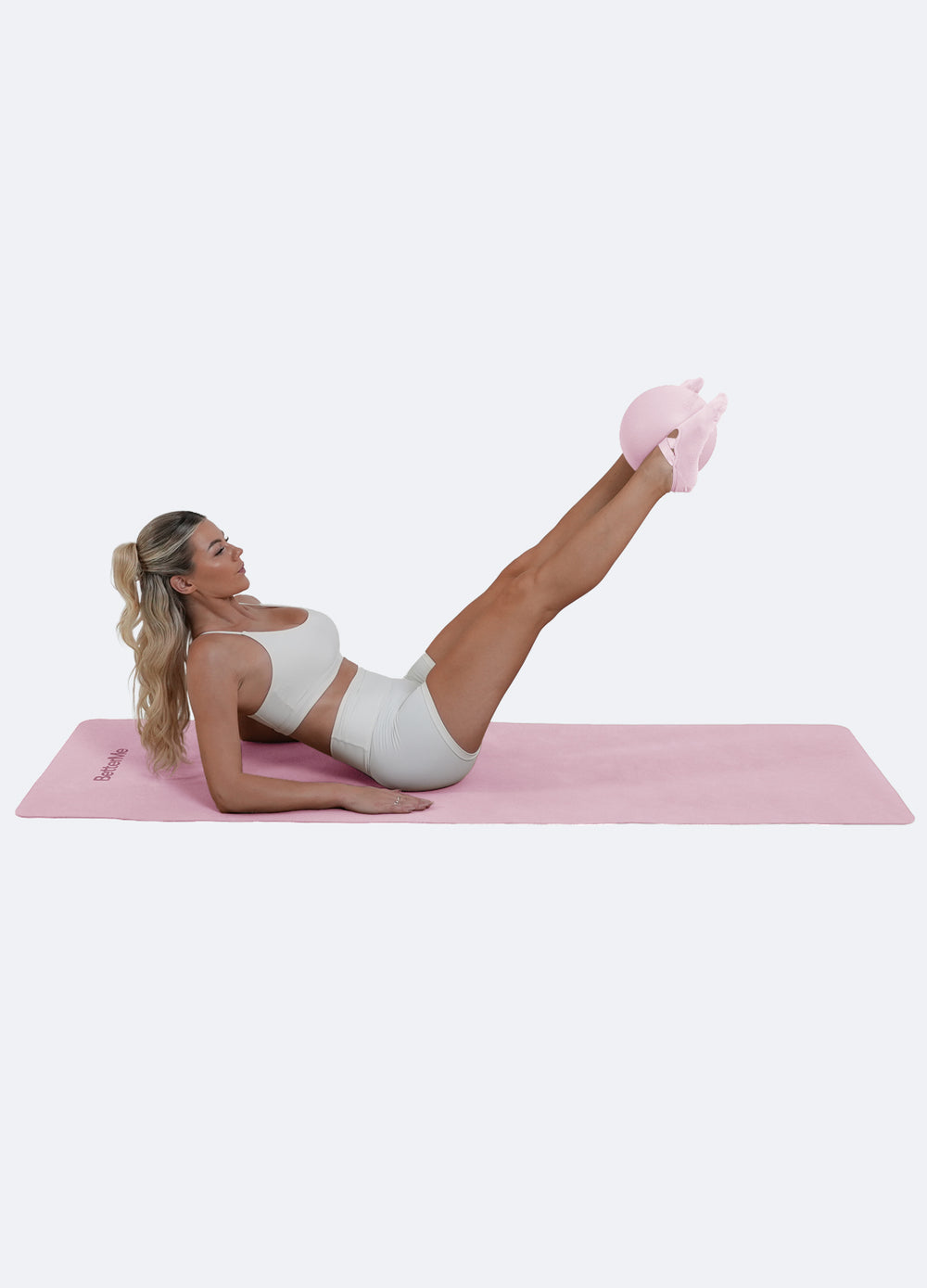 Siediti indossando i pesi alle caviglie e piazza la palla morbida tra le caviglie. Inclinati leggermente indietro e abbassati sugli avambracci. Allunga le gambe in avanti formando un angolo verso l'alto. Piega entrambe le ginocchia finché le dita dei piedi non toccano terra. Raddrizza di nuovo le gambe tenendo ferma la palla.