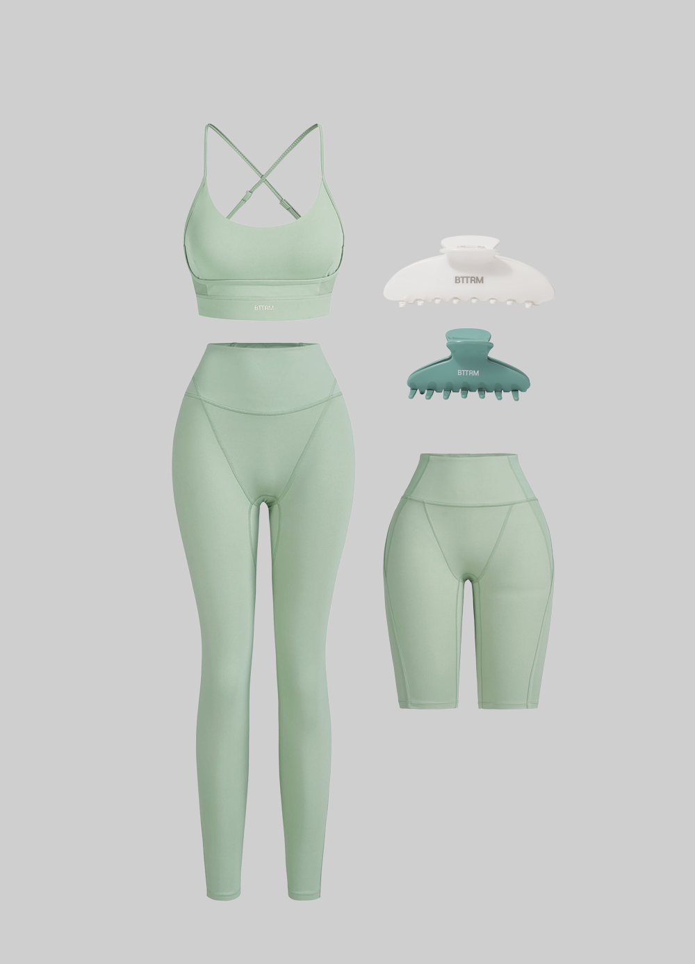 Your workout wardrobe, covered. From breathable bras to high-stretch leggings and ultra-comfy claw clips, this set checks all the boxes.