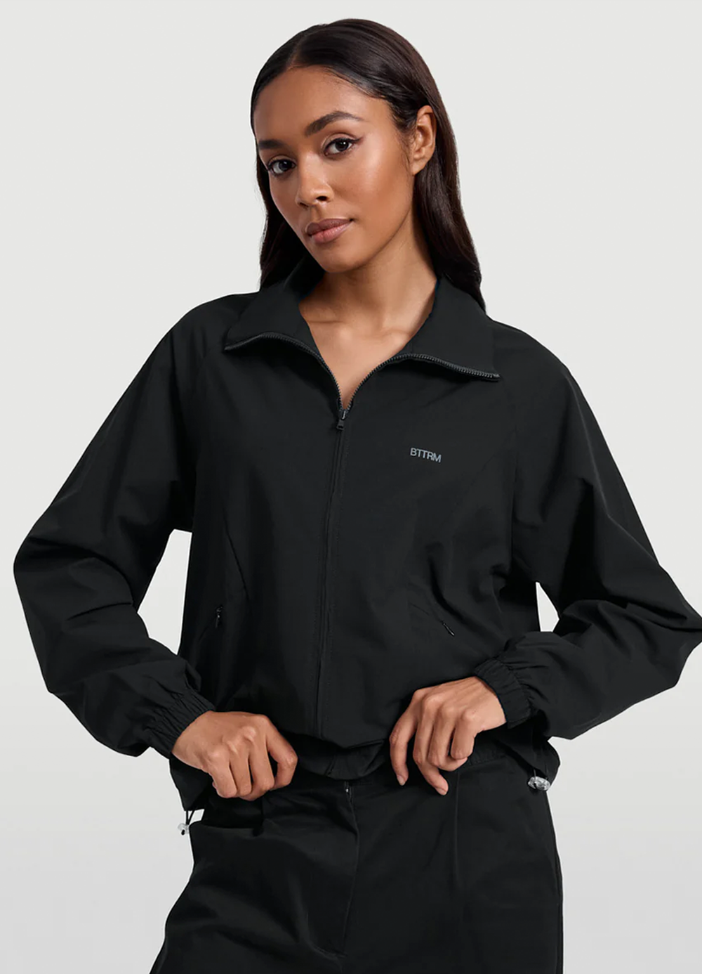 - Jacket: Full front zip, lightweight layer