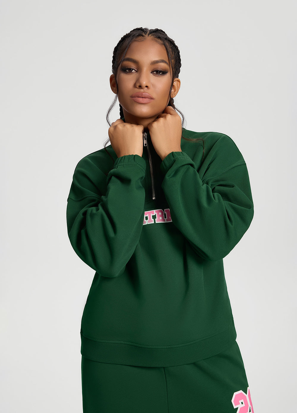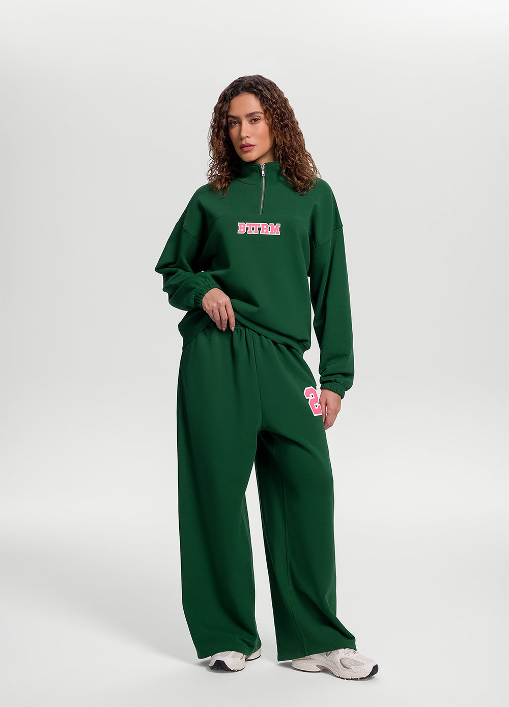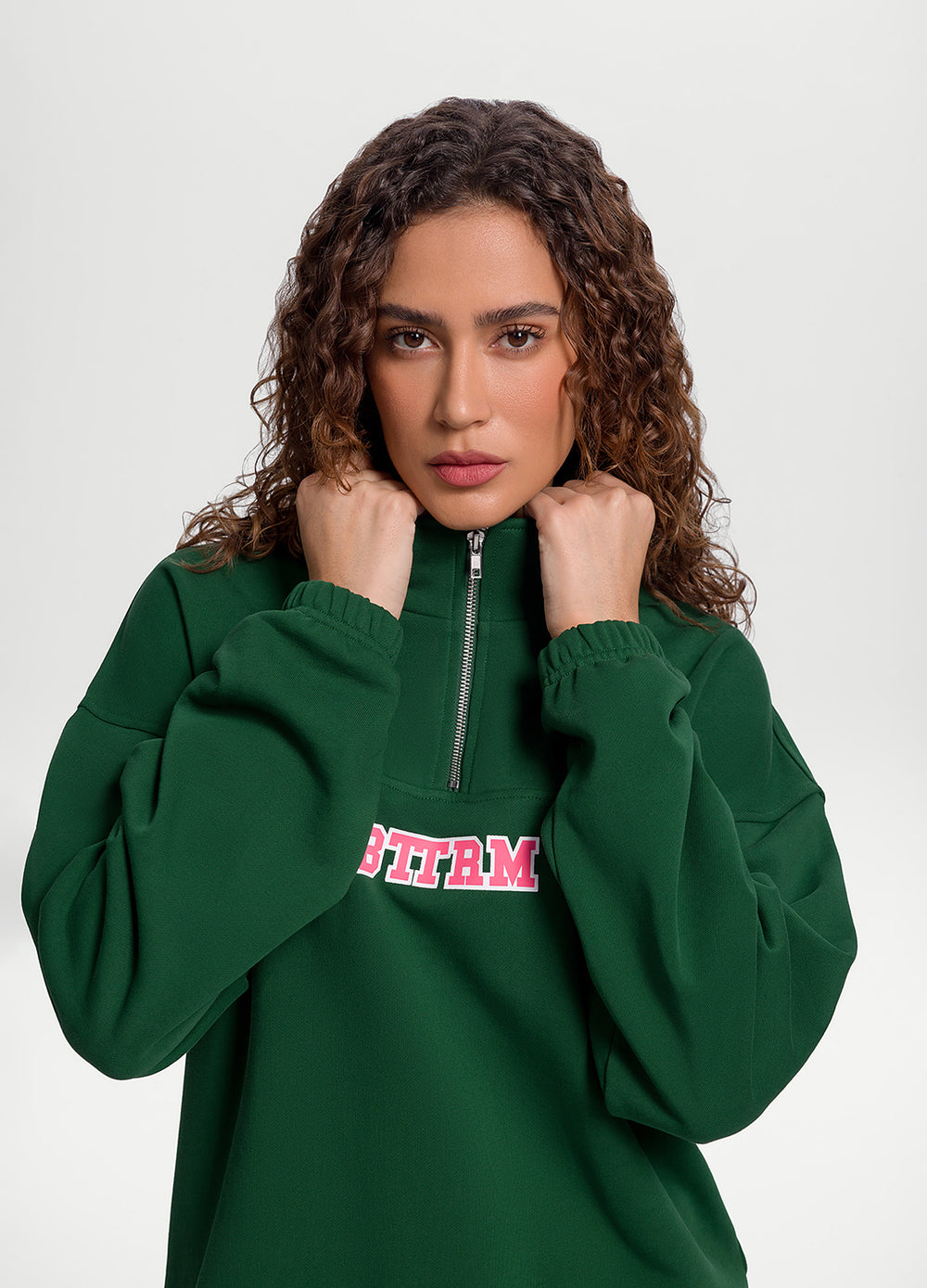 This oversized sweatshirt blends everyday comfort with varsity flair. Made from 100% soft cotton with a zip front and bold graphics to stand out.
