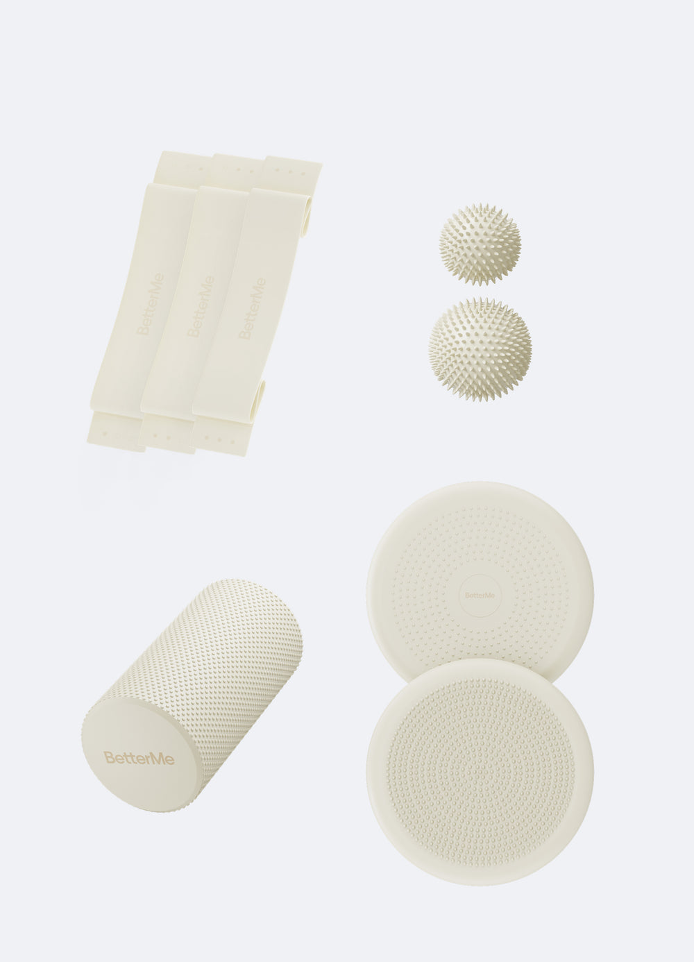 Bring movement and relief to your workspace. The BetterMe Office Fitness Kit is your go-to solution for easing tension, improving posture, and staying active — even while you work. Designed for small spaces and busy schedules, it helps you feel your best without even leaving your desk.