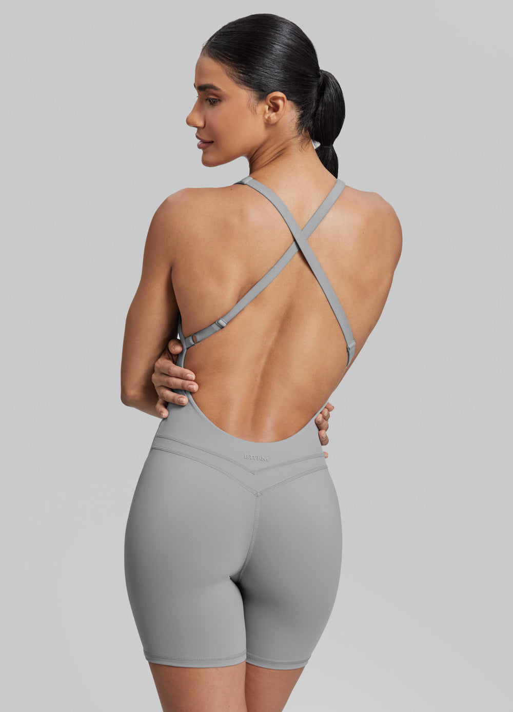 Feel smooth, supported and sweetly held in this all-in-one bodyshort. The halter neckline and criss-cross back create a gentle, secure fit that flatters without effort. Its soft stretch moves with you, keeping every moment comfy from warm-up to wind-down.