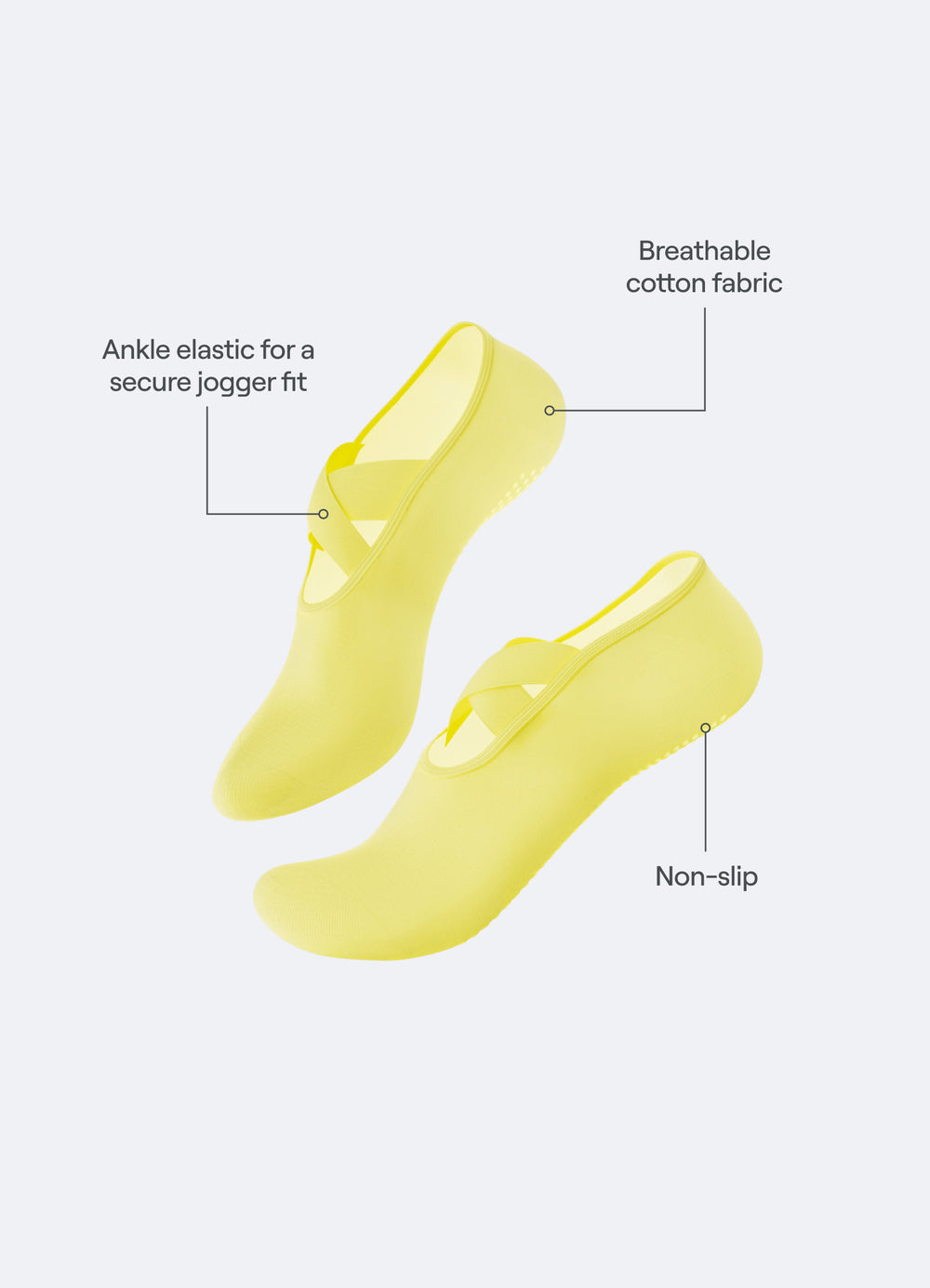 Feitas de um material respirável e confortável, as meias de aderência para pilates oferecem um recurso de faixa na parte superior do pé para manter tudo no lugar. A aderência antiderrapante na parte inferior das meias o ajudará a manter todas as posturas com facilidade, além de garantir segurança e estabilidade. Além disso, a capacidade antibacteriana e de absorção de umidade faz com que essas meias sejam perfeitas para a sua próxima sessão de pilates.