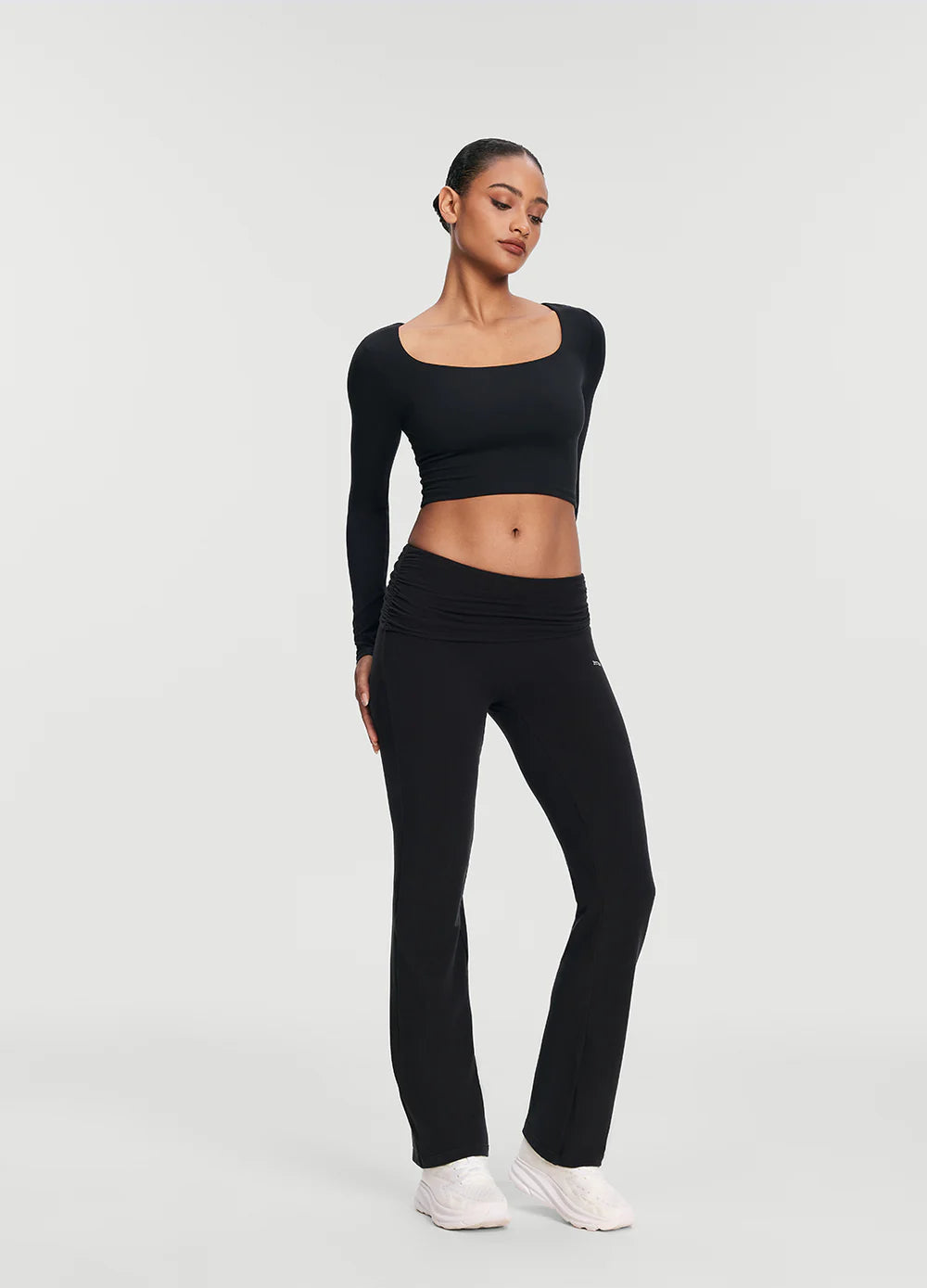 - Lounge Pants: Flared hemline, stay-in-place waistband