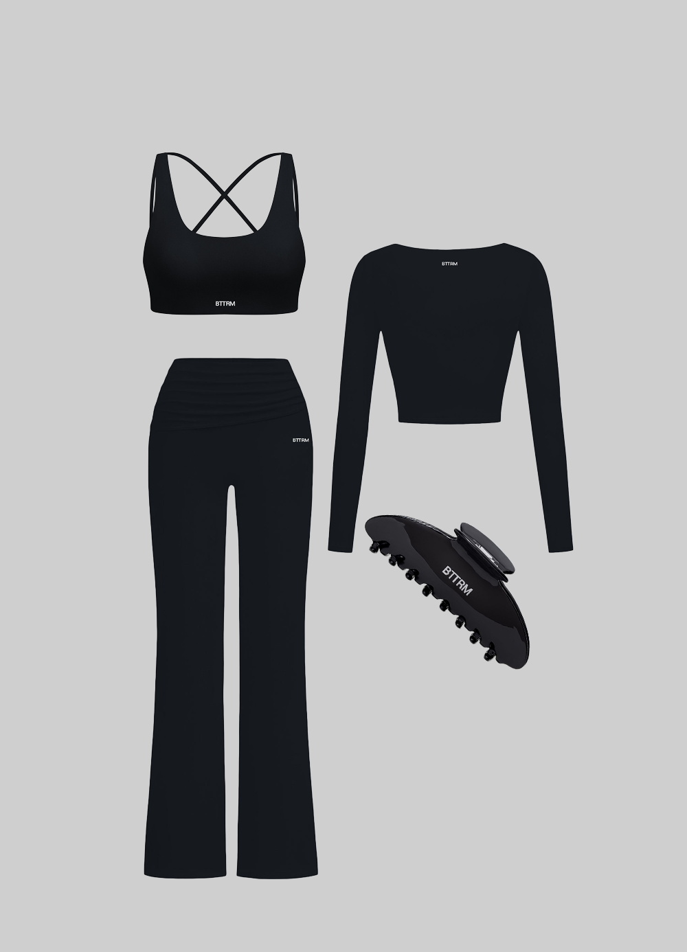 Elevated basics made to lounge, layer, and live in. This 4-piece set pairs soft, stylish staples with a sleek claw clip and a criss-cross back design — because the details matter.