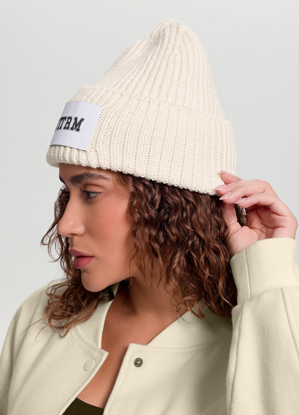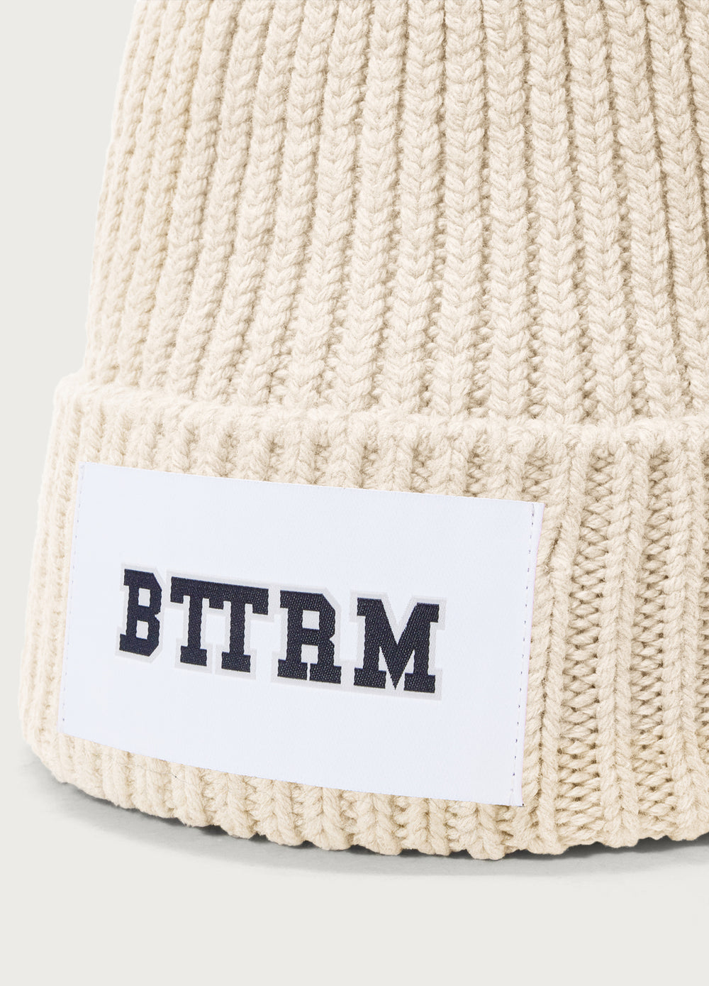 Створена для теплих і грайливих образів. М'яка в'язана шапка з виразним акцентом – нашивкою BTTRM в університетському стилі.