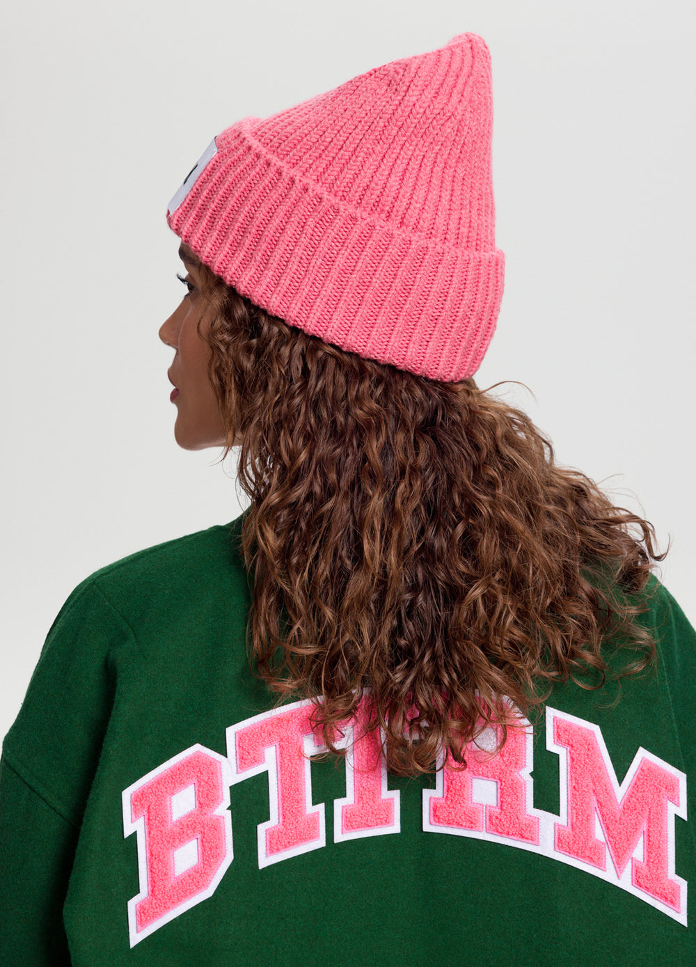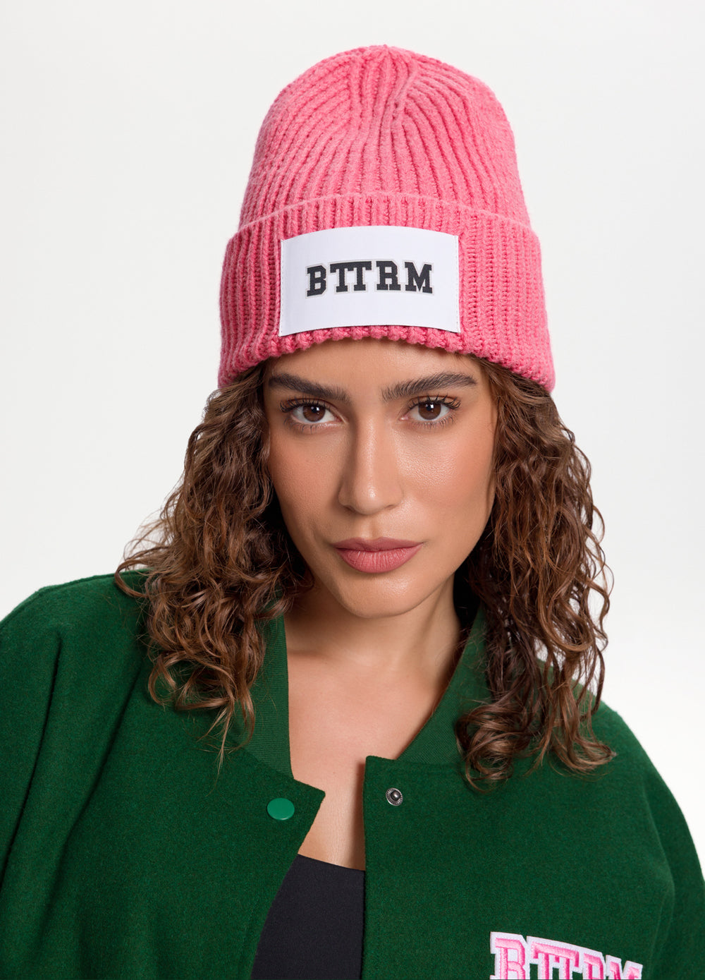 Створена для теплих і грайливих образів. М'яка в'язана шапка з виразним акцентом – нашивкою BTTRM в університетському стилі.