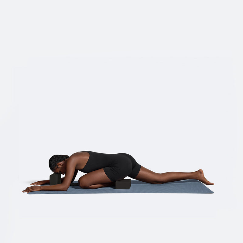 Покладіть руки на блок для йоги, щоб зберігати рівновагу під час розтяжки та зняття напруги в ногах.